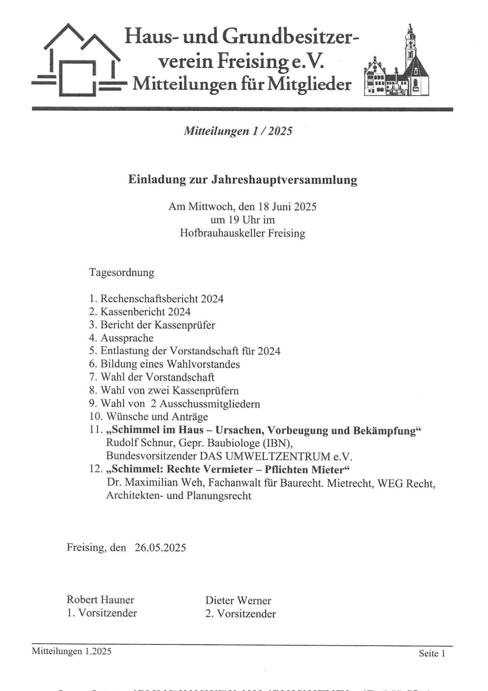 Einladung zur Jahreshauptversammlung